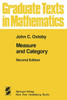 In this edition, a set of Supplementary Notes and Remarks has been added at the end, grouped according to chapter. Some of these call attention to subsequent developments, others add further explanation or additional remarks. Most of the remarks are accompanied by a briefly indicated proof, which is sometimes different from the one given in the reference cited. The list of references has been expanded to include many recent contributions, but it is still not intended to be exhaustive. John C. Oxtoby Bryn Mawr, April 1980 Preface to the First Edition This book has two main themes: the Baire category theorem as a method for proving existence, and the "duality" between measure and category. The category method is illustrated by a variety of typical applications, and the analogy between measure and category is explored in all of its ramifications. To this end, the elements of metric topology are reviewed and the principal properties of Lebesgue measure are derived. It turns out that Lebesgue integration is not essential for present purposes-the Riemann integral is sufficient. Concepts of general measure theory and topology are introduced, but not just for the sake of generality. Needless to say, the term "category" refers always to Baire category; it has nothing to do with the term as it is used in homological algebra.