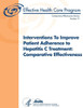 Hepatitis C virus (HCV) is the most common chronic blood-borne infectious disease in the United States. The Centers for Disease Control and Prevention estimated that 16,000 Americans were newly infected in 2009, and between 2.7 and 3.9 million community-dwelling people were living with chronic HCV infection. The primary goal of chronic HCV detection and treatment is to prevent complications and death from HCV infection. Response to HCV treatment is typically defined by surrogate virological measures, such as sustained viral response (SVR) and early viral response (EVR). Studies have shown that a variety of factors affect treatment response, including viral or disease-related factors; treatment related factors, such as the dose and duration of treatment and treatment history; and patient related factors, such as age, race/ethnicity, comorbidities, and presence of fibrosis. Genotyping is among the best ways to predict viral response to treatment and is used to determine treatment type and duration. Randomized evidence has demonstrated that antiviral therapies are efficacious in the treatment of chronic HCV infection. When it comes to effectiveness and quality of care, however, a number of issues, including treatment adherence, need to be addressed. Adherence to HCV treatment is challenging because of the lengthy duration, complex treatment regimen, and frequent adverse events. Adherence challenges are likely to become even more significant with the introduction of triple therapy. Several observational studies have examined the association between adherence and treatment outcomes, particularly SVR, in hepatitis C patients. The existing body of literature consistently shows that increasing adherence to dual therapy is associated with improved likelihood of achieving SVR. Therefore, efforts are needed to improve treatment adherence in HCV. Adherence, in the context of HCV treatment, includes patient adherence to both the medication regimen and the overall medical plan. Medication adherence is defined as the patient's use of antiviral agents according to the prescribed dose, duration, frequency, and timing. In contrast, medical plan adherence indicates that patients complete followup visits, laboratory tests, or other medical procedures according to the physician's directions. In this report, we refer to adherence to medication and adherence to the overall medical plan during HCV treatment as patient adherence, or "adherence" more generally. Nonadherence to HCV treatment may be associated with a lack of management of adverse events, higher pill burden and lengthy treatment, limited provider experience, active substance use, lack of social support, and presence of cirrhosis. Interventions for improving adherence can be categorized according to the primary risk factor they target: (1) policy-level interventions, (2) system-level interventions, (3) provider-level interventions, (4) regimen- or therapy-related interventions, (5) patient-level interventions, or (6) interventions designed to help manage adverse events. The Key Questions for this review are as follows. Key Question 1. In adult patients with chronic HCV infection undergoing antiviral therapy, what is the comparative effectiveness of treatment adherence interventions in improving intermediate (e.g., sustained viral response, histological changes, drug resistance, relapse rates, and treatment side effects) and health outcomes (e.g., disease-specific morbidity, mortality, QOL, transmission of HCV)? Key Question 2. What is the comparative effectiveness of treatment adherence interventions in improving treatment adherence (e.g., medication adherence, medical plan adherence)? Key Question 3. What are the harms associated with hepatitis C antiviral treatment adherence interventions?