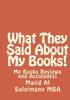 What They Said About My Books! All My Books Reviews & Accolades Books by Majid Al Suleimany Writing is the only profession where no one considers you ridiculous if you make no money! - Jules Renard Post my posting on my websites - My Books Lukewarm Coverage in Media and Acceptance - it has become essential and my wish and desire to have in one place all my Books Reviews, Accolades, Comments, Independent Assessors and Evaluators - including those from Kindle - and from my First Book in 2003 to date - stretching over 12 years in total! Thirty Three Books in total - 3 in Road Safety - 6 in Arab Management - 3 on My Autobiography - The Story of My Life! - and the rest assorted from my columns! Also to act as a Quick Review of All My Works and as a Reference Research Point! If this will not work; nothing else will! Please pray for me! Ameen! Amen! Majid Al Suleimany - The Author