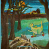 Julian does not want to wait. In the middle of the night, he gets up and climbs on the rocks around the nest. He takes a long branch and places it on the side of the nest. The branch touches the ground below. He lets himself glide along the branch.Juli?n no quiere esperar. Por la noche se levanta y trepa sobre las piedras que bordean el nido. Coge una larga rama y la pone en el lado. Se desliza sobre la rama que llega a ras de tierra.