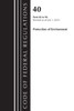 Title 40 presents regulations governing care of the environment from the 14 subchapters of Chapter I and from the provisions regarding the Council on Environmental Quality found in Chapter V. Programs addressing air, water, pesticides, radiation protection, and noise abatement are included. Practices for waste and toxic materials disposal and clean-up are also prescribed. Additions and revisions to this section of the code are posted annually by July. Publication follows within six months. ,