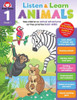 Evan-Moor Listen And Learn Animals, Grade 1, Activity Workbook, Includes Stickers And Audio Read Along, Basic Skills, Drawing, Comprehension, Addition, Matching Game, Art Projects, Mazes, Homeschool