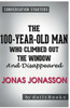The 100-Year-Old Man Who Climbed Out the Window and Disappeared: by Jonas Jonass Conversation Starters A Brief Look Inside: The 100-Year-Old Man Who Climbed Out the Window and Disappeared by Jonas Jonasson is a fun and quirky story about an old man who is on the run from the police, bad guys, and the manager of his nursing home. The story begins when Allan Karlsson decides to flee from his birthday celebration and inadvertently acquires a suitcase at the bus stop on his way to "nowhere." The book takes the reader on an adventure that reveals how Karlsson's life coincidentally affected the last 100 years of history... The 100-Year-Old Man Who Climbed Out the Window and Disappeared has sold over eight million copies and received awards all over the world. EVERY GOOD BOOK CONTAINS A WORLD FAR DEEPER than the surface of its pages. The characters and their world come alive, and the characters and its world still live on. Conversation Starters is peppered with questions designed to bring us beneath the surface of the page and invite us into the world that lives on. These questions can be used to.. Create Hours of Conversation: - Foster a deeper understanding of the book - Promote an atmosphere of discussion for groups - Assist in the study of the book, either individually or corporately - Explore unseen realms of the book as never seen before Disclaimer: This book you are about to enjoy is an independent resource to supplement the original book, enhancing your experience of The 100-Year-Old Man Who Climbed Out the Window and Disappeared. If you have not yet purchased a copy of the original book, please do before purchasing this unofficial Conversation Starters.