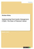 Master's Thesis from the year 2003 in the subject Business economics - Business Management, Corporate Governance, grade: 70%, University of East London (East London Business School), course: Master of Business Administration, language: English, abstract: Total Quality Management has worked in Japan, so why shouldn't it work in the USA, Europe or Africa? This is a very popular statement amongst many multinational companies when they want to implement quality strategies in different countries. They usually ignore the importance of culture and its impact on transplanting quality strategies that has been successful in one cultural set up. This is one of the main reasons why TQM has not worked in many countries. The compatibility of TQM with different cultures should always be reviewed since work ethics for instance in Ghana is different from that in Japan. Culture reflects the way of life, values, and beliefs of a society and as such very difficult to change but rather can be slightly modified through education and training to adapt to certain quality management strategies. This claim of the impact of national culture, on the successful TQM implementation across national boundaries forms the basis of this management report. In this report therefore, literature on both TQM and culture will be critically discussed in the first two chapters. The third chapter will critically analyze the literature on the impact of culture in the successful implementation of TQM across different countries. Chapter four will analyze the managerial implications and finally a conclusion and recommendation will be drawn. [...]