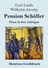 Carl Laufs, Wilhelm Jacoby: Pension Schöller. Posse in drei Aufzügen Lesefreundlicher Großdruck in 16-pt-Schrift Großformat, 210 x 297 mm Berliner Ausgabe, 2019 Durchgesehener Neusatz bearbeitet und eingerichtet von Theodor Borken Erstdruck: Berlin (Bloch), 1898. Textgrundlage ist die Ausgabe: Carl Laufs: Pension Schöller. Nach einer Idee von W. Jacoby, elfte Auflage, Berlin: Eduard Bloch Theaterverlag, [o.J.]. Umschlaggestaltung von Thomas Schultz-Overhage unter Verwendung des Bildes: Erich Heckel, Aus einem Irrenhaus, 1914. Gesetzt aus der Minion Pro, 16 pt. Henricus Edition Deutsche Klassik UG (haftungsbeschränkt)
