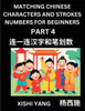 Welcome to Mandarin Chinese Test Series to learn counting number of strokes order of Chinese characters. The Chinese characters are provided in the left columns and the stroke numbers in the right columns. You need to link the characters and numbers (连一连汉字和笔划数). The answers are provided at the end of the book. The Series contain thousands of puzzles to match Chinese characters with correct stroke numbers.